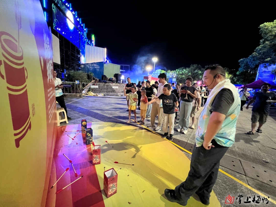 活动现场的互动区域同样精彩纷呈。趣味猜灯谜的灯笼下,人们或凝神思索,或豁然开朗;投壶场地传来阵阵喝彩声,古老的礼仪游戏考验着参与者的专注与技巧;欢乐套圈和创意叠杯等游戏,充满了孩子们的欢声笑语……这些活动简单而富有乐趣,拉近了人与人之间的距离,重现了传统佳节其乐融融的景象。