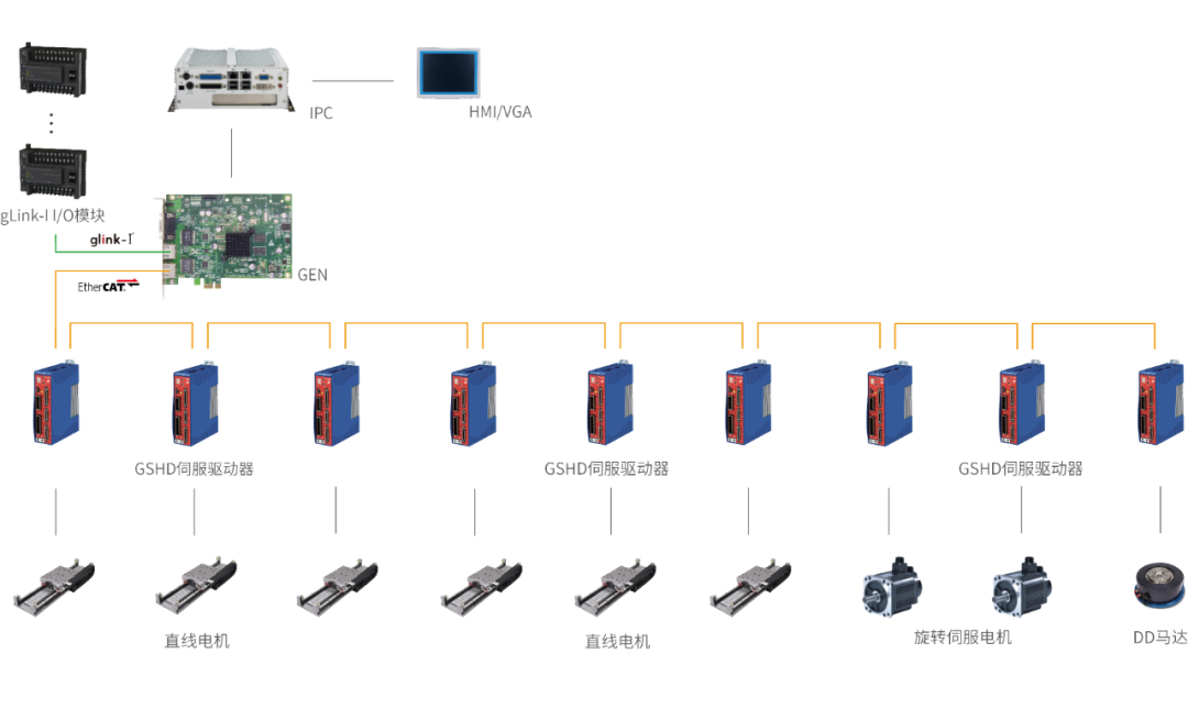 ● 直线电机:6个轴,全部搭载固高GSHD系列高性能伺服驱动器;
