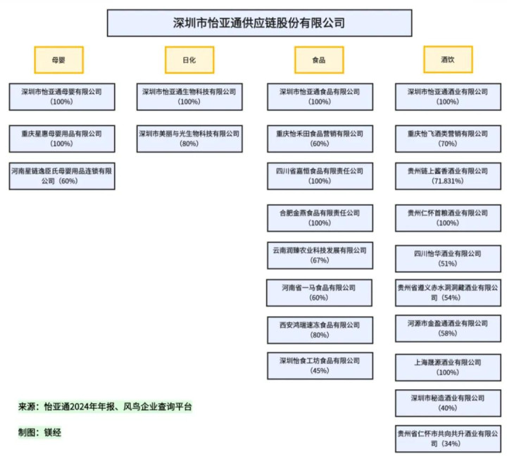 ▲怡亚通母婴、日化、食品、酒饮四大板块相关企业的控股情况